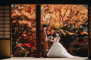 大覚寺の回廊でお着物を下ろしているショットや正座をしているショットなど屋内ならではの撮影も格別です