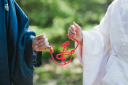 新郎様に手を引かれて少しはにかんだ表情が素敵です。