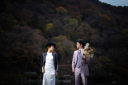 京都の建物の木の質感は着物との相性はともて良いです。色打掛をより綺麗に写します。