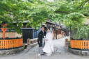門をくぐって、緑が綺麗な道をお二人で歩いて頂きます