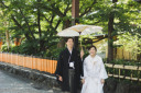 しっかりと整備をされたお庭になるので和装にぴったりです。和傘も相性が良いですね。