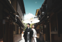帰りは仲良く手を繋いで松の木並ぶ一本道をゆっくりと歩いて頂きます。