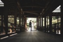 回廊の背景に新緑の紅葉。これが秋になると綺麗な紅葉にもなるので撮り甲斐ありそうですね。