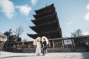 お二人のバックに見える宝ヶ池と色づいた山。時期によって景色を変える宝ヶ池公園は撮影してる側も気分が上がります!