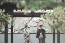 お庭での撮影が終わったらいよいよお寺の中に。着物が綺麗に写るポイントを探して後ろ姿を撮影しました。