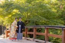 和装は雲場池での撮影。紅葉がじわじわと始まった時期ということもあり、鮮やかに彩る木々を見つめながら