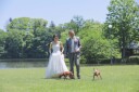 見晴らしのいい場所に出てドレスをふわっとさせて動きのあ写真にしました