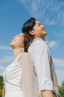 かなり高い位置にある飯綱山公園では奥行きもある写真が撮れます!指輪も、チラッと見えるお顔も可愛い!photo下中千聖hairmake山中真里奈