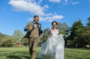 真っ赤に色づいた木があったので新婦様のソロショット!白無垢が映えます!