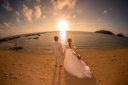 サンセットの中で寄り添うおふたり。夕陽の温かな光が、おふたりのロマンチックな時間を優しく包み込みます。