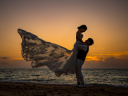 サンセットの美しい色彩が、ベールに鮮やかに映ります。ロマンチックな光景がおふたりの特別な日を彩ります。