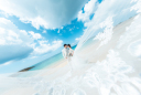 黄金色に輝く夕暮れの空が、新婦様の愛を温かく包みます。金色に輝く空に浮かぶ笑顔が、永遠の幸せを予感させます。