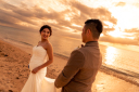 海辺で戯れる二人の姿を、波と共に楽しい一枚に撮影。波と遊ぶ楽しさが伝わる、笑顔あふれる写真です。波のリズムに合わせて二人の幸せな瞬間をキャッチしましょう♬