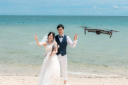 ドローンが新郎新婦様を色々な方向から撮影します♬ドローンに手を振ってくださいね~♪