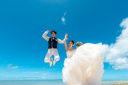 広い海と空と白い砂浜に囲まれたおふたりのバックショット☆