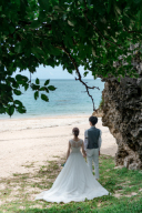 沖縄らしい、青い空と海をバックにお2人の正面のショットからロケフォトスタート♬︎