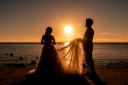 風になびくベールが、新婦の美しさを際立たせる一枚。自然の力が愛と幸せを感じさせる特別な瞬間です。