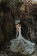 風になびくベールがふたりをそっと包み込んで、まるで映画のワンシーンみたいですね♪