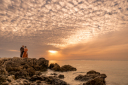 空と海、緑に包まれた中で手をつなぎ向き合うふたり。穏やかな想いが自然と伝わる一枚です。