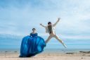 パパとママと一緒にジャンプ!元気いっぱいの動きと笑顔が重なる、楽しい思い出の一枚です。