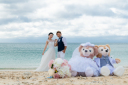 新郎新婦様の接近ショット♡海とシャボン玉を背景にカワイイ1枚♪