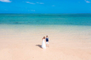 貸し切りの海♡手を繋いで波打ち際へとむかうお2人のバックショット☆