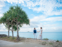 遠浅の綺麗な天然のビーチでドローン撮影からスタート!新郎新婦様を色々な方向から撮影します♬