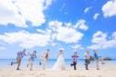 新婦様のご家族も撮影にかけつけてくれました。みんなでわいわい撮影を楽しみました。暑い太陽に、少し冷ための風が心地よかったです。撮影後のオリオンビールはきっと最高の味がします!