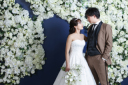 桜の花言葉は「優美な女性」。淡く儚げな桜の花々が花嫁の透明感と美しさを引き出します。