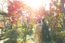 倉敷美観地区で有名な新渓園のお庭で撮影しました♩真っ赤で綺麗な紅葉に包まれた素敵なお写真♡