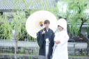 まずは軒下でツーショット★はじめは緊張すると思いますが、スタッフ一同と楽しいコミュニケーションを取りながらリラックスして撮影に取り組むことができます。