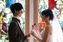 あえて、イルミネーションのライトを薄くすることで、おふたりやベールがしっかりと浮かび上がります。