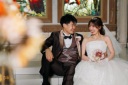 本格的なステンドグラス輝くチャペルにて洋装撮影をスタートしました◎実際に結婚式がおこなわれていると感じながら撮影すると、より思いが強くなりますね。