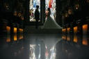 おふたりに照明を当てて、とても神秘的...!ご新婦様のふわりとさがるベールに少しステンドグラスが透けて見えるのもいいですよね◎