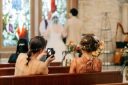 ご家族様に見守られながら、挙式風セレモニーを執り行います。お母様からのベールダウン、お父様とバージンロードを進むなど、まるで挙式をおこなっているかのようです!