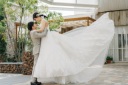 季節によって変わる色とりどりのお花スポットの前で☀レースを基調としたナチュラルテイストのウェディングドレスもガーデンの雰囲気にピッタリです!
