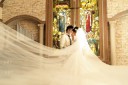 美しい花嫁姿の新婦様がチャペルへご到着です。この後ドレス姿ではじめてのご対面です。