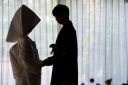 場所をさらに移動して、おふたりで縁側に座って。非日常の空間で、庭を眺めたり、ふと空を見上げたり。時間がゆっくりと流れるように感じます。