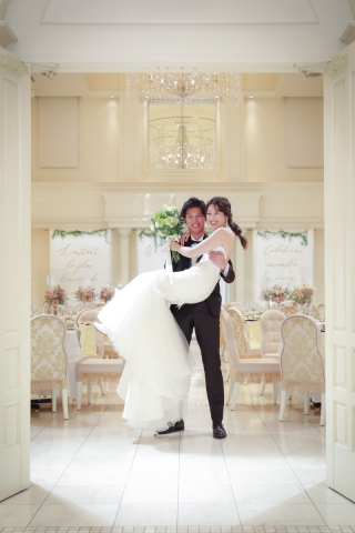 カメラマンさんがこだわりを持って構図やポーズを指定してくれて、カッコよい写真に仕上がりました。 チャペルの青い絨毯とウェディングドレスの組み合わせもかなりキレイに映り満足してます。