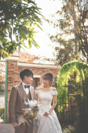 館内ガーデンの中でも人気の撮影シーン。ポージングや立ち位置などで二人らしさを演出♪