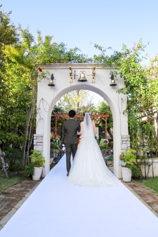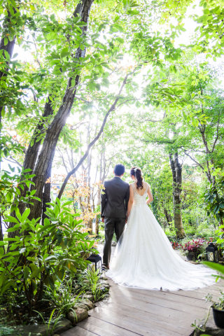 緊張していましたが、自然な笑顔が引き出された写真が多くすごく満足です! 庭園の植物や装飾してある花越しの写真など色んなアングルの物があり、素敵でした!