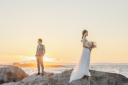 ベールをなびかせて お二人全体のショットですそろそろ日が落ちてきました