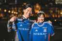 青空と丸の内のビル群を背景に ツーショット撮影です