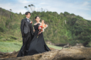 お二人の自然な雰囲気を撮影左からサンセットの光が降り注いでおります