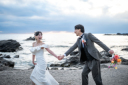 日が落ちてくる感じの撮影も良いですねお二人におでこタッチをして頂きシルエットで