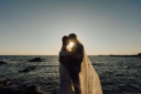 お二人寄り添ってでのポーズで撮影背景は白でシンプルに撮影