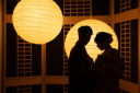 和装との相性もバッチリ◎扇子の小物を使用したショット、扇子からひょっこりお顔を出すおふたりがとっても可愛らしい♡”