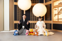 よく見ると、お洋服を着ていておめかしクマさん♪おふたりには抱っこしていただいてまるで家族写真のような温かな雰囲気ですね!