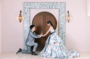 ピンクの色打掛と、可愛らしいお花の背景がピッタリですね♥