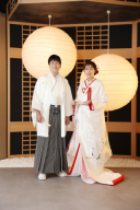 ワンちゃんだって、大切な家族。記念撮影も一緒がいいですよね♪主役のお二人に合わせて、和装で参加してくださいました!